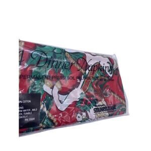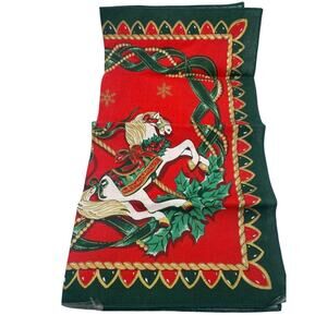Vintage Christmas Napkins Set Lot 4 NEW Fabric Cloth Red Horse Carousel Cotton