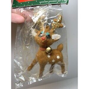 Vintage Christmas Ornament Felt Flocked Deer Reindeer Holiday Decor 5 NOS. In original package. Some wear to packaging. Please see photos.
