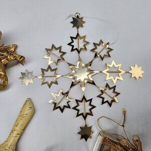 Vintage Christmas Ornament Gold Tone Angels Stars Mirror Gift Boxes Metal Bird