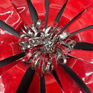 Vintage Christmas Ornament Handmade Red Silver Flower Aluminum Metal Atomic