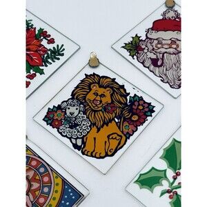 Vintage Christmas Ornament Lot of 5 Glass Cardinal Santa Lion Poinsettia Candle