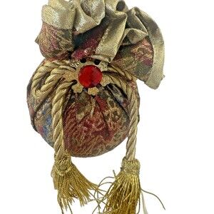 Vintage Christmas Ornament Potli Bag Pouch Gold Red Jewel Tassel Indian Style
