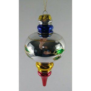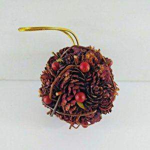 This lot of 4 vintage ornaments includes 2 Duncan Ceramics bears made in 1975, a plastic retro looking finial ornaments, and an pinecone globe ornament.
