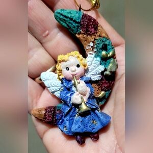 Vintage Christmas Ornaments Patchwork Angels&Santas Resin Molded Set 6 pcs.