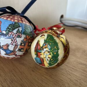 Vintage Christmas Ornaments Snowman Santa Lot of 2 Ball Ribbon