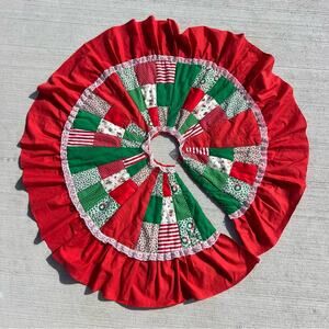 Vintage Christmas Patchwork Puff Quilted Ruffle Tree Skirt Handmade