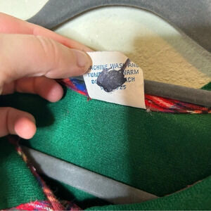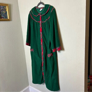 This is so cute! Green with red plaid trim. Snap buttons so it's more of a house dress than a nightgown in and of itself. In very good used condition. Union made in the USA!