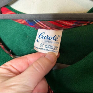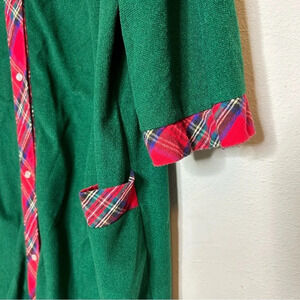 tags: vintage Christmas house dress, plaid holiday dress, size large festive attire, retro Christmas plaid dress, vintage holiday dress, women's Christmas dress, classic plaid house dress, vintage winter dress, holiday season dress, nostalgic Christmas apparel, pre-owned festive dress