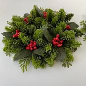 This set of 2 plastic evergreen and red berry Christmas candle rings / wreaths decor are in Excellent vintage condition!