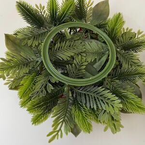 Vintage Christmas Plastic Greenery Red Berry Candle Ring Holders Wreaths Set