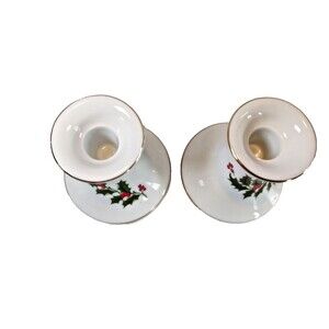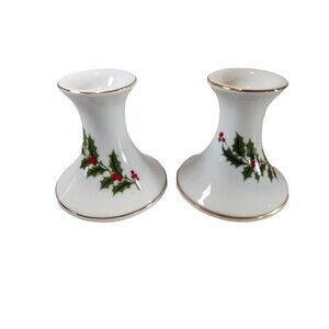 Vintage Christmas Porcelain Ware Caldor Candle Holder Pair -Made in Japan