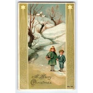 Vintage Christmas Postcard Children in Snowy Landscape No. 150 Germany Antique