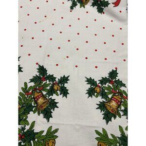 Vintage Christmas Printed Tablecloth Red Bows Ribbons Polka Dots 1950s Red Green