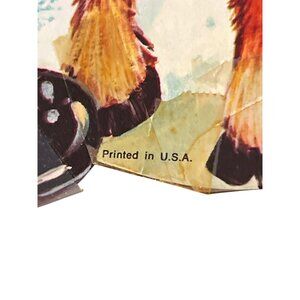 This vintage die-cut features a charming Santa Claus with a reindeer, offering a nostalgic touch to holiday decor. Printed in the U.S.A., it showcases classic Christmas imagery, enhancing festive settings.