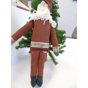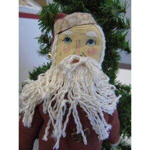 Vintage Christmas Santa Doll Made From Wood And Fabric Beard And Three Buttons