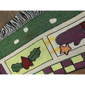 This vintage Christmas tapestry throw blanket features a festive holiday design with Santa Claus, stars, and holiday icons, adding a warm touch to seasonal decor.