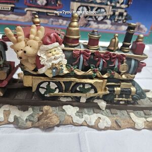 Vintage Christmas Santa's Town 18" Mantle Train 4 Stocking Hanger W/Box Heavy