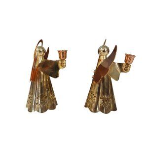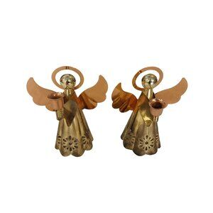 Vintage Christmas Set of 2 Brass And Copper Angel Candle Holders
