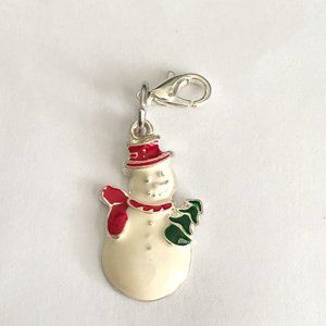 Vintage Christmas Snowman Clip On Charm Silver Plated Bracelet Zipper Pull Purse