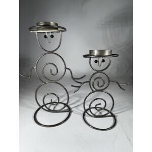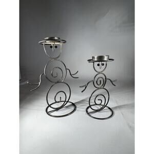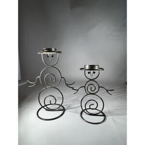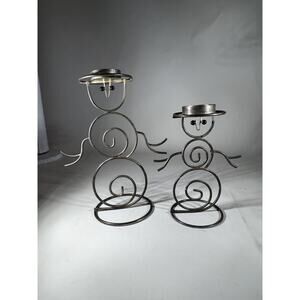 Vintage Christmas Snowman Set Of 2 International Silver Company Tea light Holder
