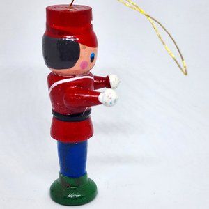 Vintage Christmas Standing Tin Soldier Hand Painted Wood Ornament