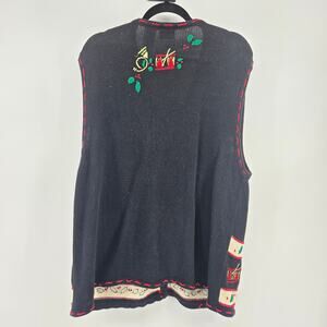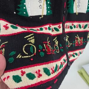 Vintage Christmas Stitched Beaded Knit Novelty Button Sweater Vest Size XL