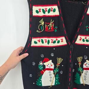 Vintage Christmas Stitched Beaded Knit Novelty Button Sweater Vest Size XL Snowman Holiday Ugly Christmas Sweater Teacher Grandma Mistletoe Embroidered Crochet