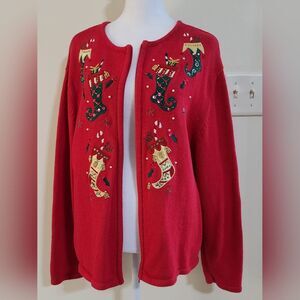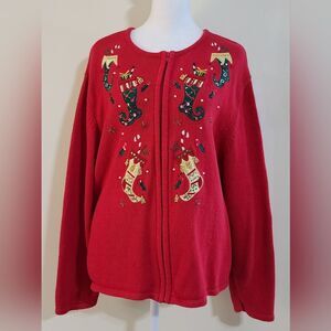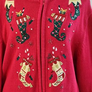 Vintage Christmas Stockings Zip Front Jacket Cardigan Size Large