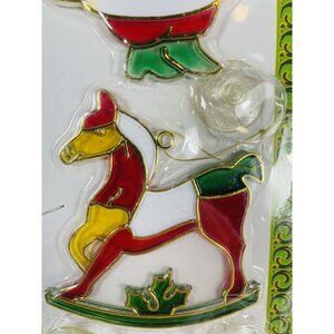 Vintage Christmas Suncatcher Resin Snowman Train Lantern Set of 3 New Old Stock