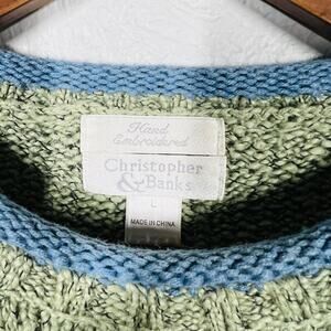 Vintage Christmas Sweater Christopher Banks Tree Crewneck Grey Blue - L