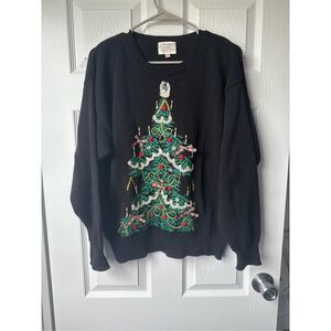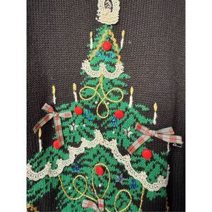 Vintage Christmas Sweater Handmade Embroidered Ramie Tree Embellished