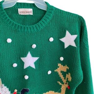 Vintage Christmas Sweater Holiday Crewneck Santa Claus Reindeer Star Adell Barre