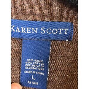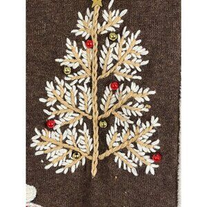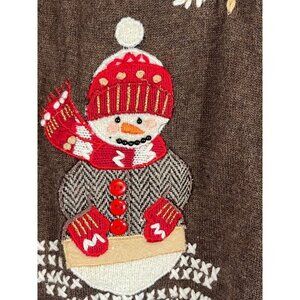 Vintage Christmas Sweater L Brown Holiday Embroidery Snowman Festive Retro Artsy