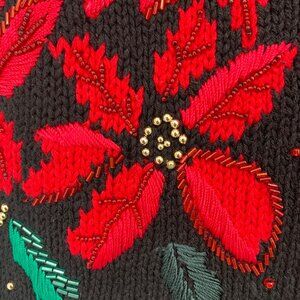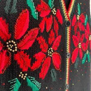 Vintage Christmas Sweater Vest Westbound S Black Poinsettia Embroidered Beaded