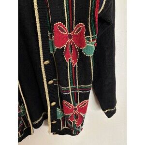 Vintage Christmas Sweater Womens Medium Norton McNaughton Cardigan Embroidered