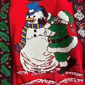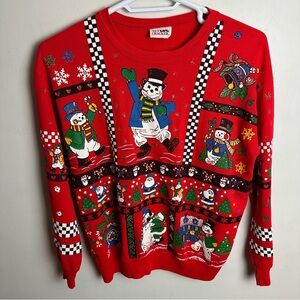 Vintage Christmas Sweatshirt Jumper Women's Size Large Checkered Santa Snowman