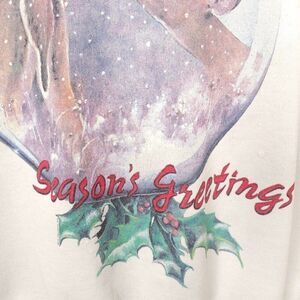Vintage Christmas Sweatshirt Mens Size Large White 80s Holiday Made In USA