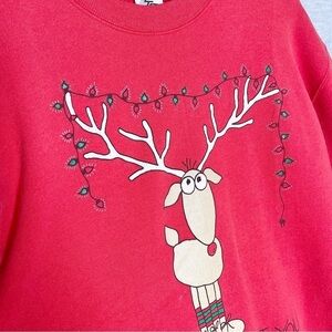 Vintage Christmas Sweatshirt Size L Reindeer Ugly Strung Out Lights 90s Made USA.