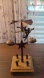 Charming metal candle holder with an angel design. Features a wooden base and rotating elements.