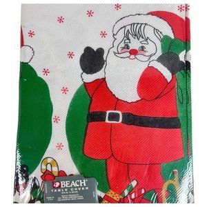 Vintage Christmas Table Cover Beach Santa Claus Toy Tablecloth Paper New 54”x96”