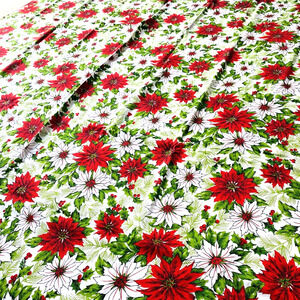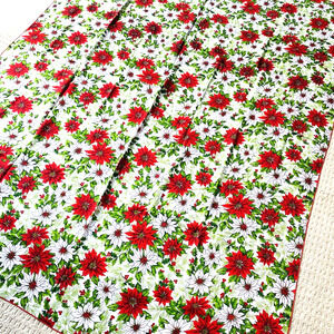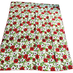 Vintage Christmas Tablecloth Cotton Blend Cloth Festive Red & White Poinsettias