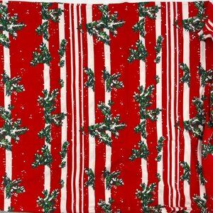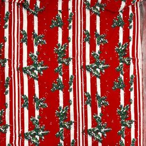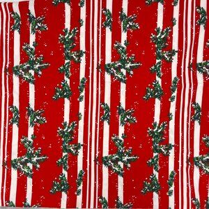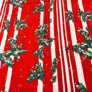 Vintage Christmas Tablecloth Pine Tree Snow Red White Stripes Holiday Home Decor