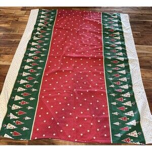 Vintage Christmas Tablecloth Trees Red Green Gold White Approx 60x70 Inches
