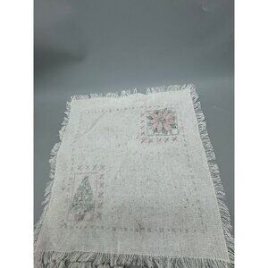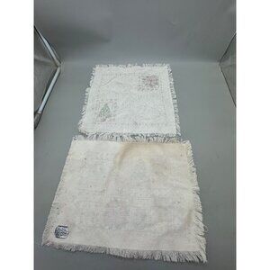 Vintage Christmas Themed Fringe Placemats Set Of 2 18"x13" Used READ