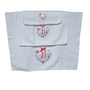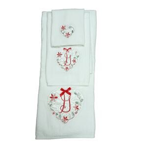 🎄Vintage Christmas Towel Set Monogram G Heart 💖 Holiday Bath Distressed