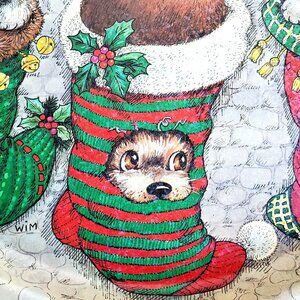 Vintage Christmas Tray Potpourri Press 1991 Cute Kitten and Puppies In Stockings