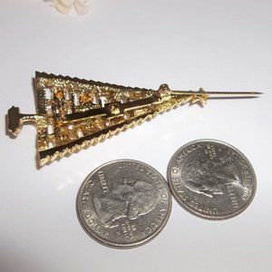 Vintage Christmas Tree Brooch Rhinestone Signed BJ Beatrix Gold Jewelry 6848
