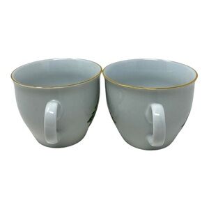 2 Vintage Christmas Tree Coffee Cups with. Gold Rim.