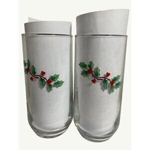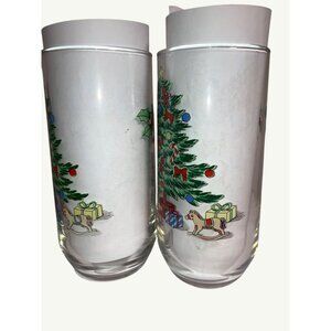 Vintage Christmas Tree Design Drinking Glasses Set Of 2