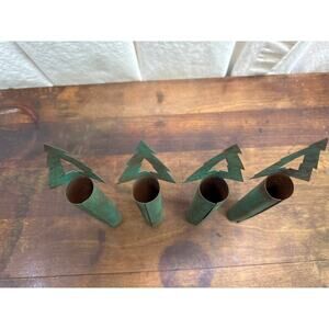 Listing includes 4 metal Christmas tree pieces. I have no idea what the intended purpose for these is. They appear to have been used outside as they are a bit rusty / distressed. Maybe they are for candles along a walkway or some sort of garden / landscape stake. Definitely a unique item. They all have areas with rust and paint loss.